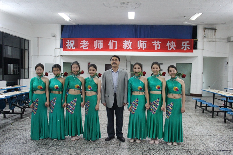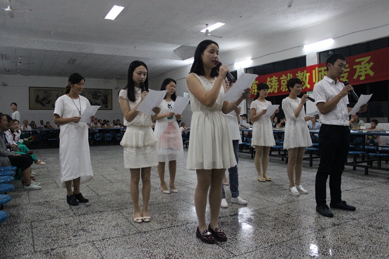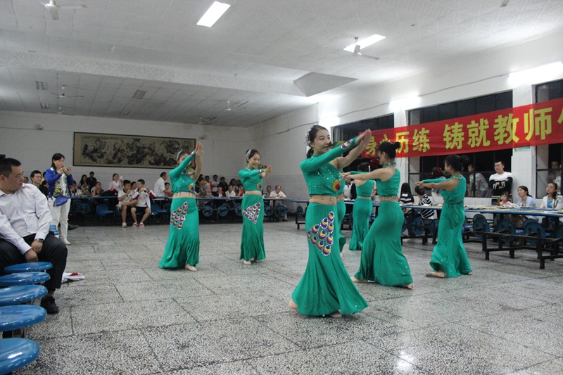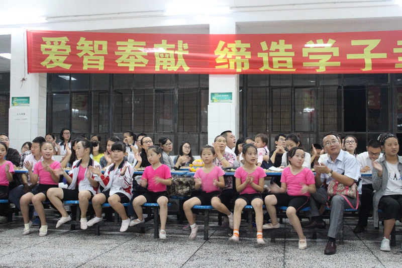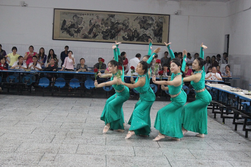 節(jié)目表演在來自初中部的史悅成同學(xué)深情演唱《每當(dāng)我走過老師的窗前》中拉開序幕,整個茶話會節(jié)目形式多樣,有獨唱、合唱、詩朗誦、街舞、現(xiàn)代舞等精彩表演,會場氣氛熱烈,掌聲不斷。今年茶話會最大的亮點是校舞蹈隊為老師們獻(xiàn)上了一支《女兒花》,這支舞蹈剛剛在樂山市中小學(xué)生藝術(shù)展演中榮獲一等獎,并將于9月28日在大佛劇院表演。