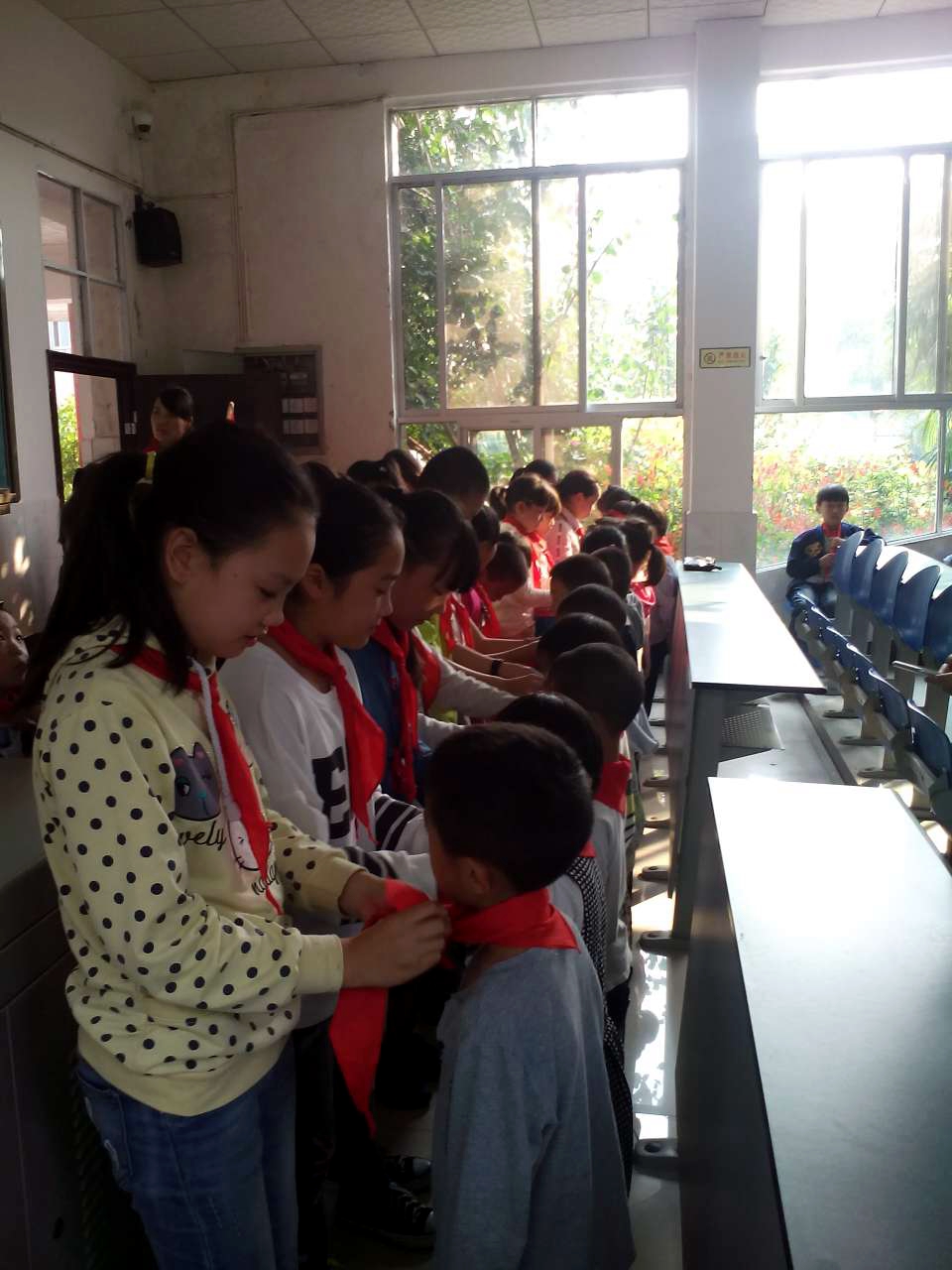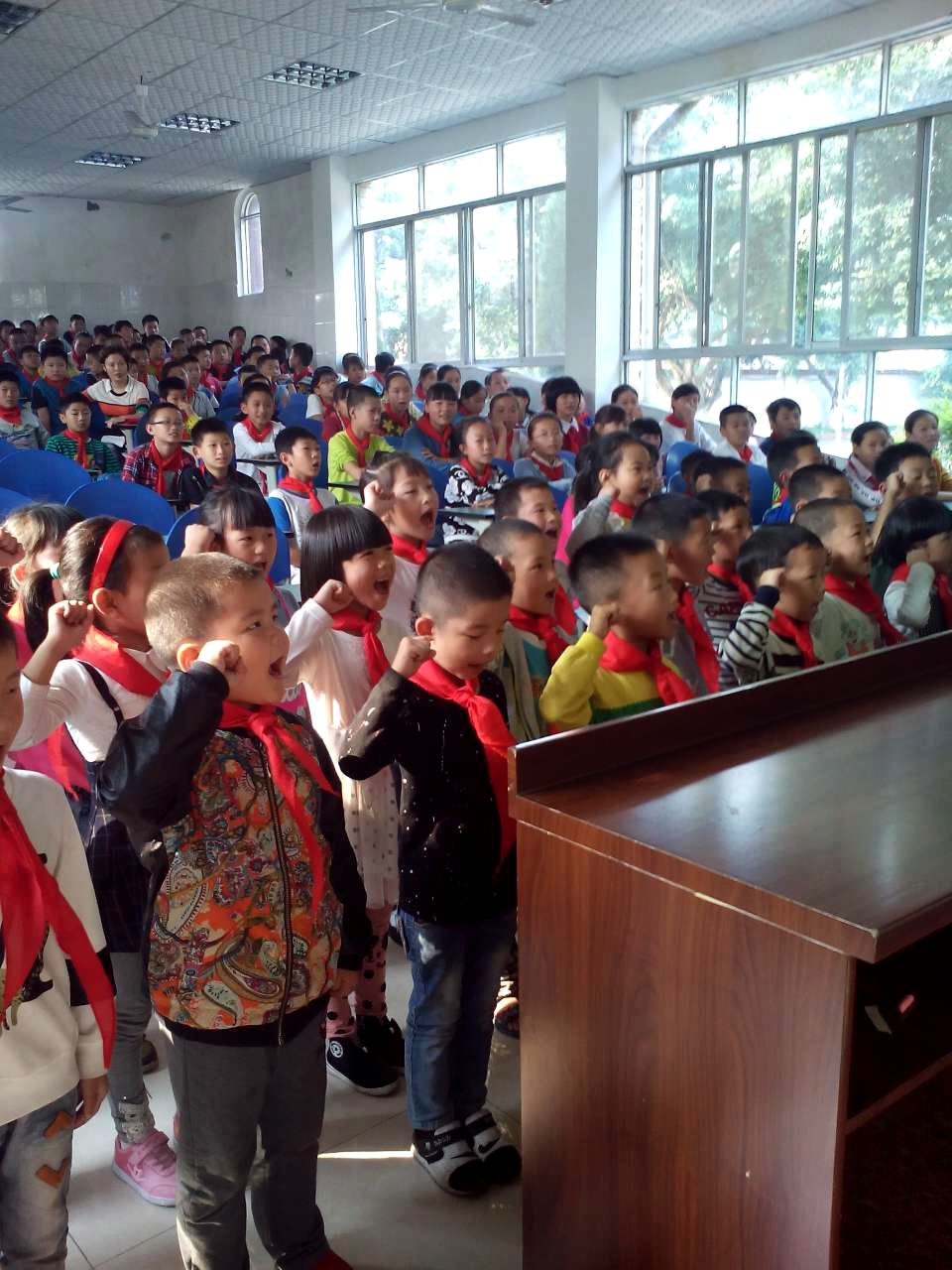 10月13日下午,為了慶祝少先隊(duì)建隊(duì)66周年,樂山市更生學(xué)校大隊(duì)部組織全體少先隊(duì)員舉行建隊(duì)日紀(jì)念活動(dòng)?;顒?dòng)中進(jìn)行了組建新的大隊(duì)部、聘請(qǐng)新的中隊(duì)輔導(dǎo)員、新隊(duì)員入隊(duì)儀式等一系列活動(dòng)。隨后,各中隊(duì)又開展了“我為隊(duì)旗添光彩——紀(jì)念建隊(duì)日66周年”主題中隊(duì)會(huì),中隊(duì)會(huì)形式多樣,內(nèi)容豐富。全小學(xué)部高歌“我們是共產(chǎn)主義接班人”,所有的輔導(dǎo)員和少先隊(duì)員的臉上都洋溢著幸福的笑容。大隊(duì)部還邀請(qǐng)三至六中隊(duì)中隊(duì)長(zhǎng)現(xiàn)場(chǎng)講解紅領(lǐng)巾的佩戴方法,敬隊(duì)禮的動(dòng)作要領(lǐng),隊(duì)歌、隊(duì)史、隊(duì)章等內(nèi)容。活動(dòng)在六中隊(duì)嘹亮的“中國(guó)少年先鋒隊(duì)”歌曲演唱中結(jié)束。